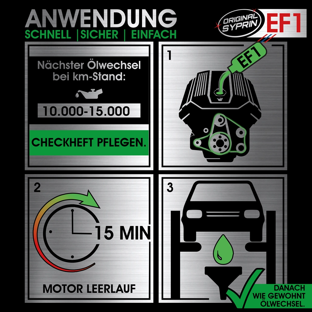- EFFEKTIVE REINIGUNG: Original Syprin EF1 Motorspülung enfernt hartnäckige Ablagerungen und verhindert das Verstopfen der Ölleitungen.