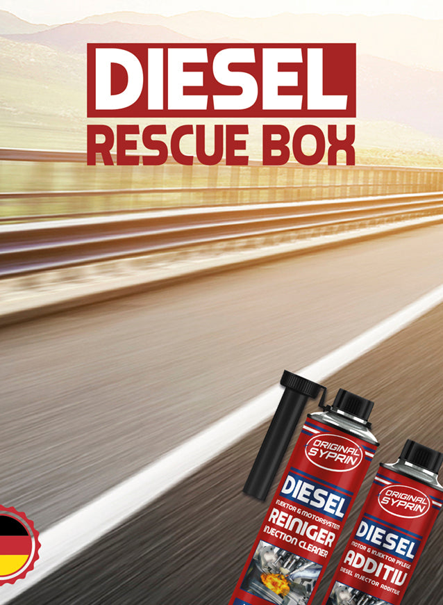 Optimale Anwendung der Diesel Rescue Box: beim Tankstop wird der Original Syprin Diesel Reiniger dem Tanken hinzugefügt - danach das Auto wie gewohnt volltanken - losfahren. Im zweiten Step wird beim nächsten Tanken das Diesel Additiv dem Tank hinzugefügt - wie gewohnt tanken und dann losfahren. Unser Diesel Reiniger und Additiv sind beide selbstmischend.