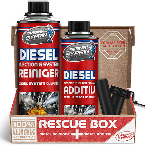 ORIGINAL SYPRIN Diesel Rescue Box - Diesel Reiniger und Additiv (500ml + 250ml)Verkäuferin: syprinORIGINAL SYPRIN Rescue Box: Diesel Motorsystem & Injektor Reiniger und Pflege-Additiv Der SYPRIN Diesel Einspritz- & Systemreiniger ist ein hochwirksame Reinigungs-additiv zur schnellen und kostengünstigen Reinigung von störenden Ablagerungen im Kraftstoffsystem von Dieselmotoren. Der Reiniger sorgt für optimalen Korrosionsschutz und erhöhen die Zündwilligkeit.Das...